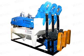 工作流程:洗砂機(jī)溢流的洗沙廢水與細(xì)沙回收機(jī)的清洗槽相連,而后通過渣漿泵將清洗相中的砂水混合物輸送至泥高壓分離器中,通過高速離心力和額定的入料壓力,旋流器將礦漿中的細(xì)沙分離,分J濃縮后濃度提升至60-70%的細(xì)砂經(jīng)沉砂嘴提供給脫水篩,在篩機(jī)振動的作用下,細(xì)砂與水有效分離。